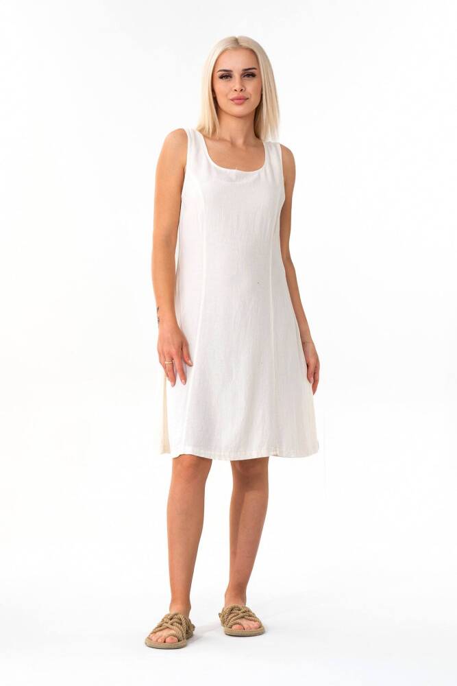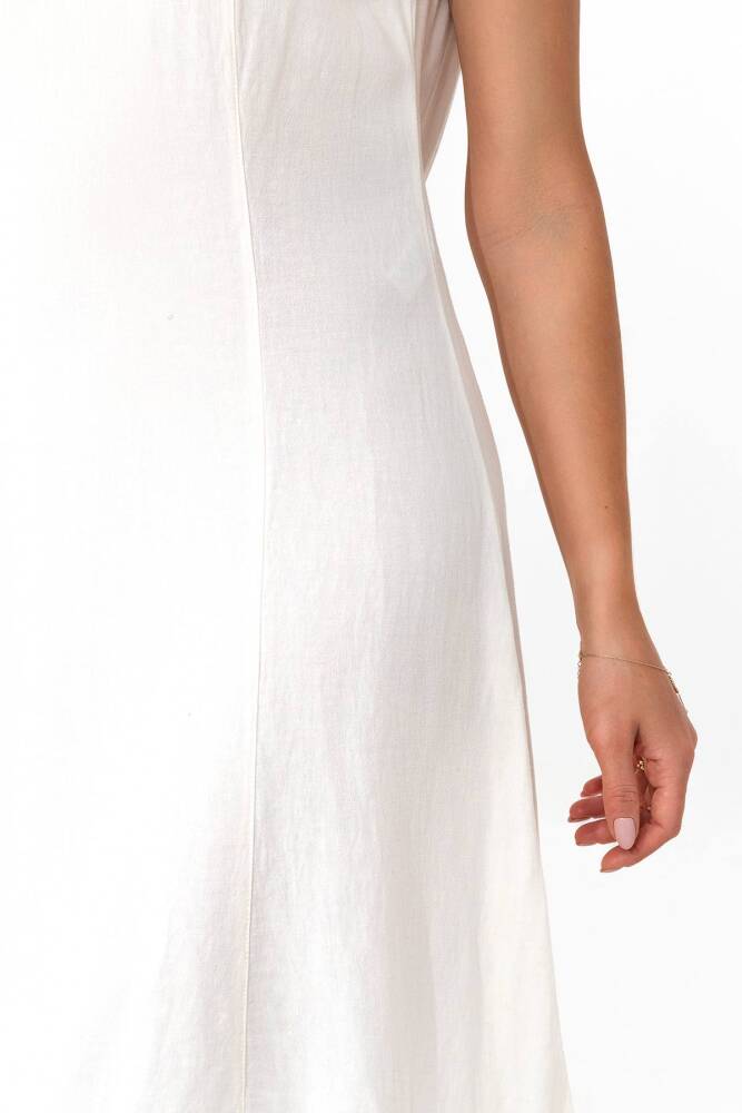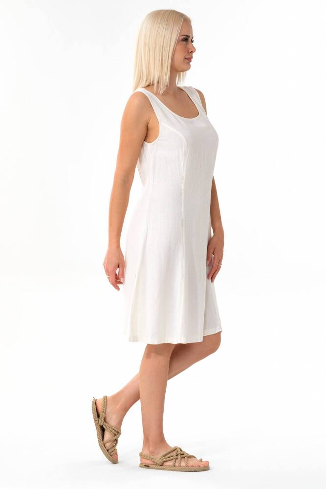 Askılı Beli Bağcıklı Yazlık Keten Elbise Beyaz