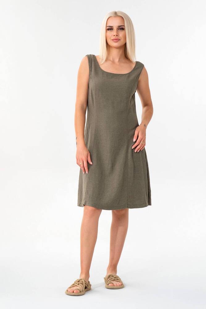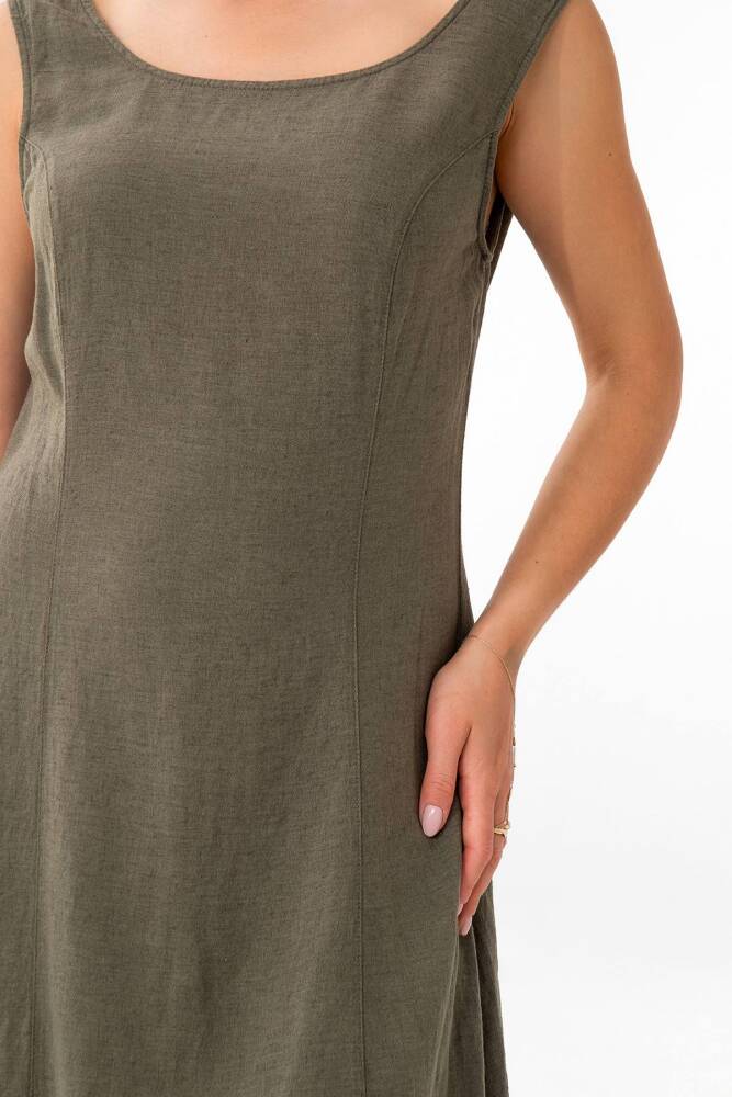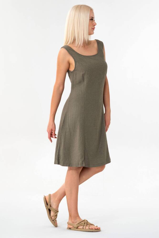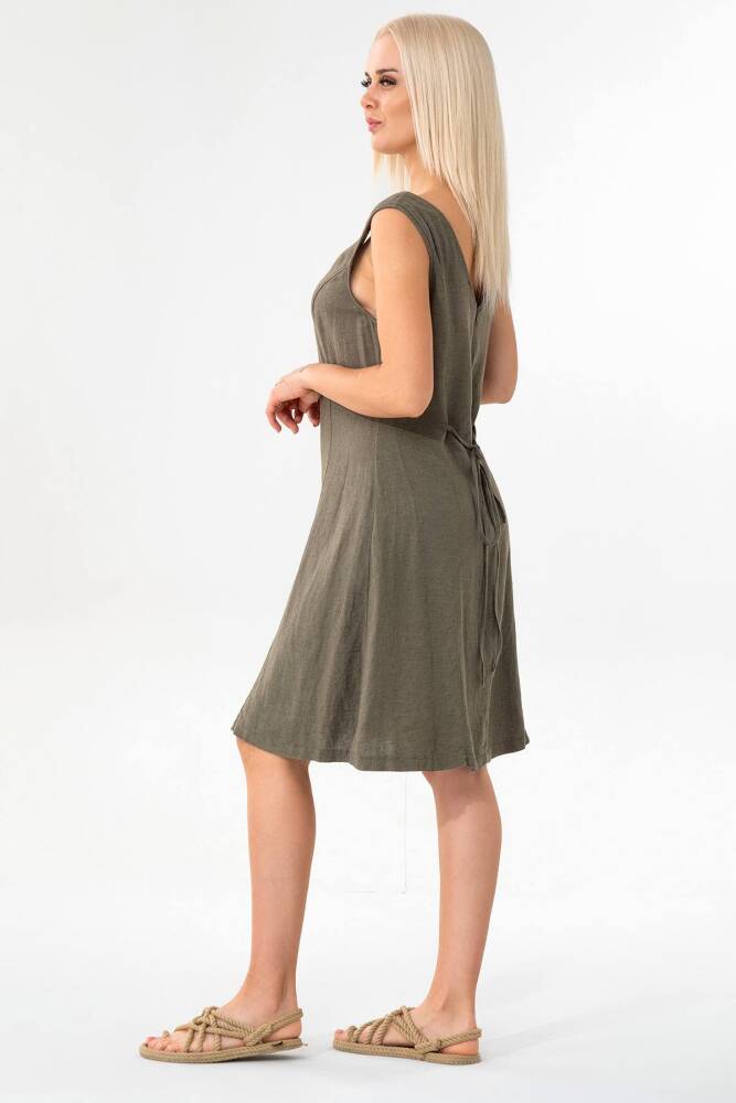 Askılı Beli Bağcıklı Yazlık Keten Elbise Haki