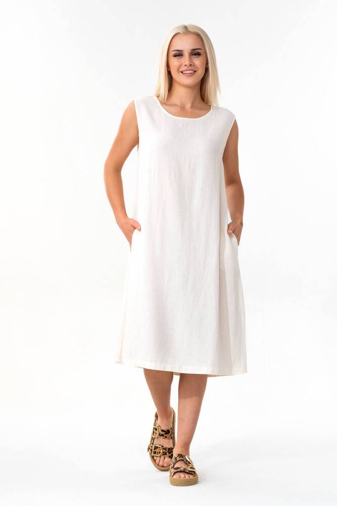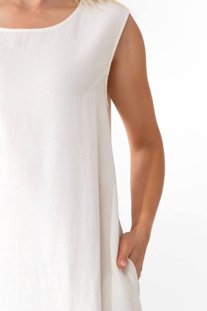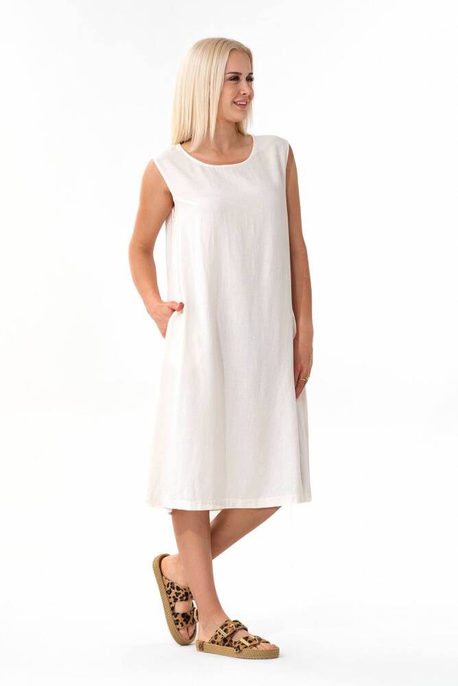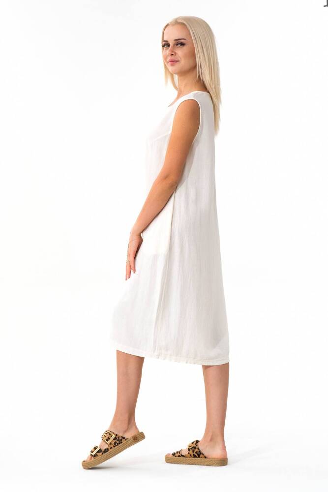 Kalın Askılı Yandan Cepli Yazlık Keten Elbise Beyaz