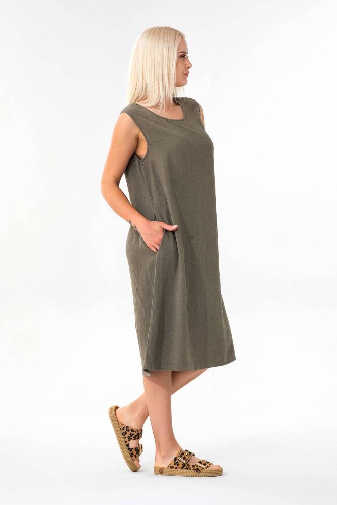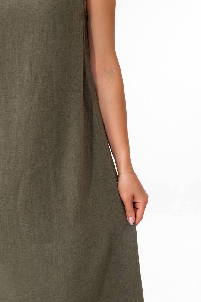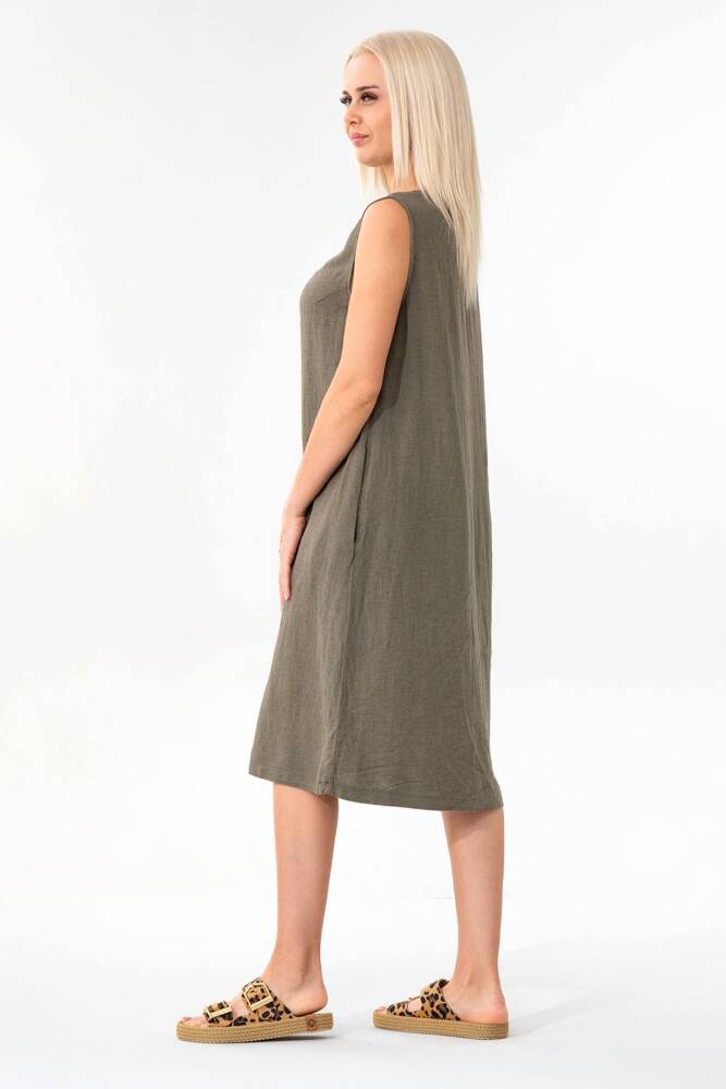 Kalın Askılı Yandan Cepli Yazlık Keten Elbise Haki