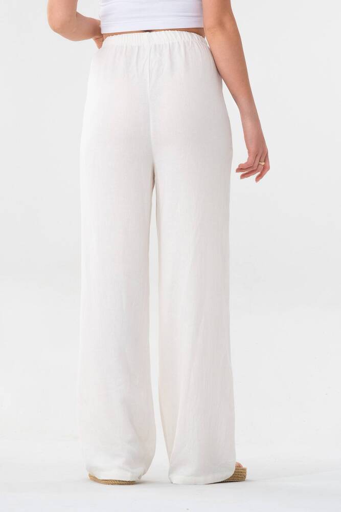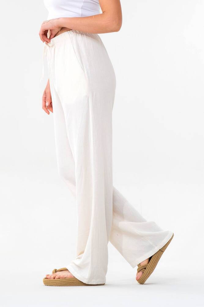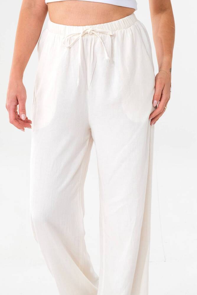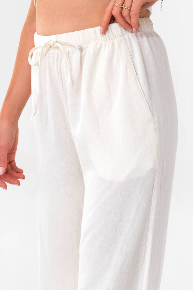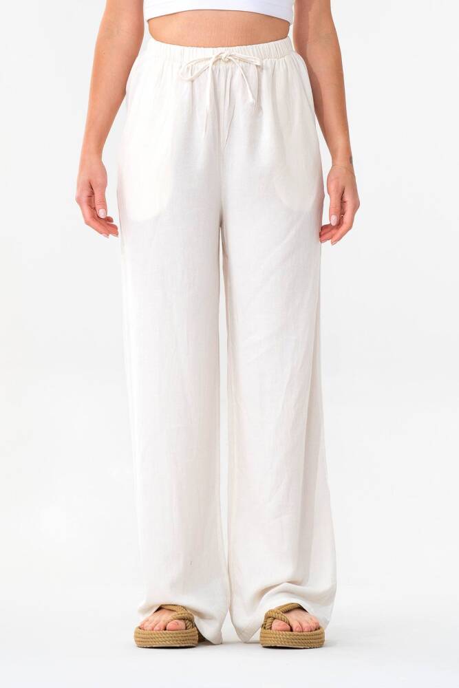 Keten Beli Lastikli %100 Doğal Kumaş Bayan Pantolon Ekru