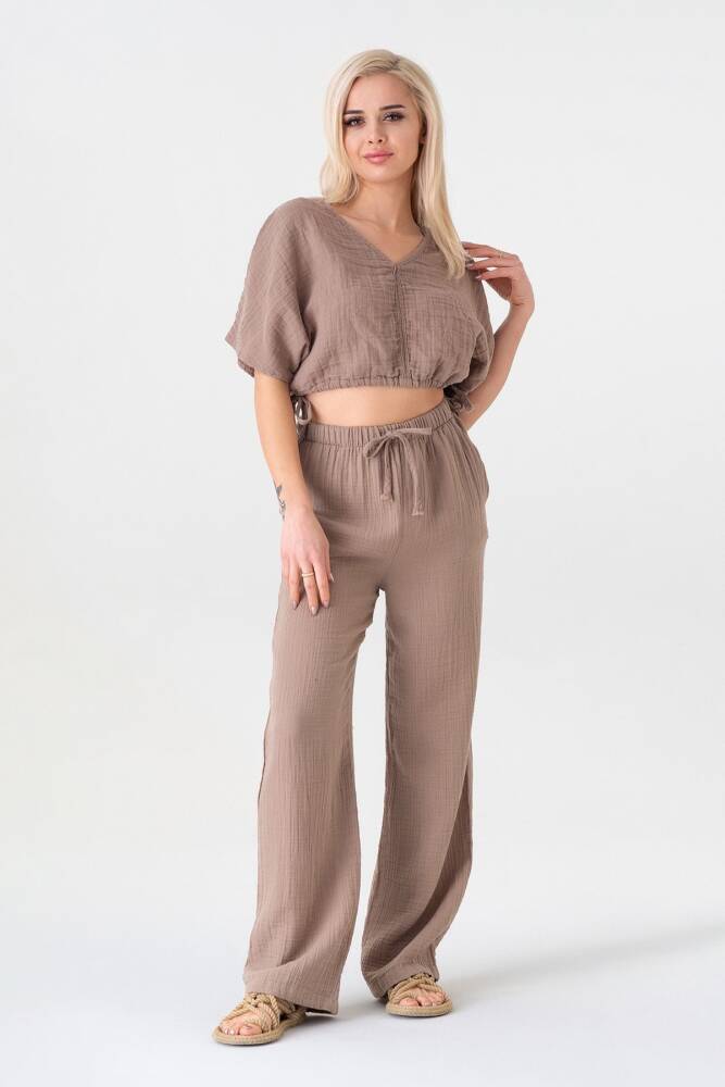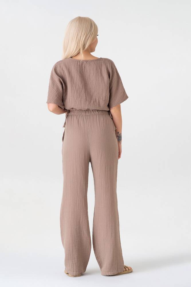 Müslin %100 Doğal Kumaş V Yaka Beli Ayarlanabilir Crop Vizon