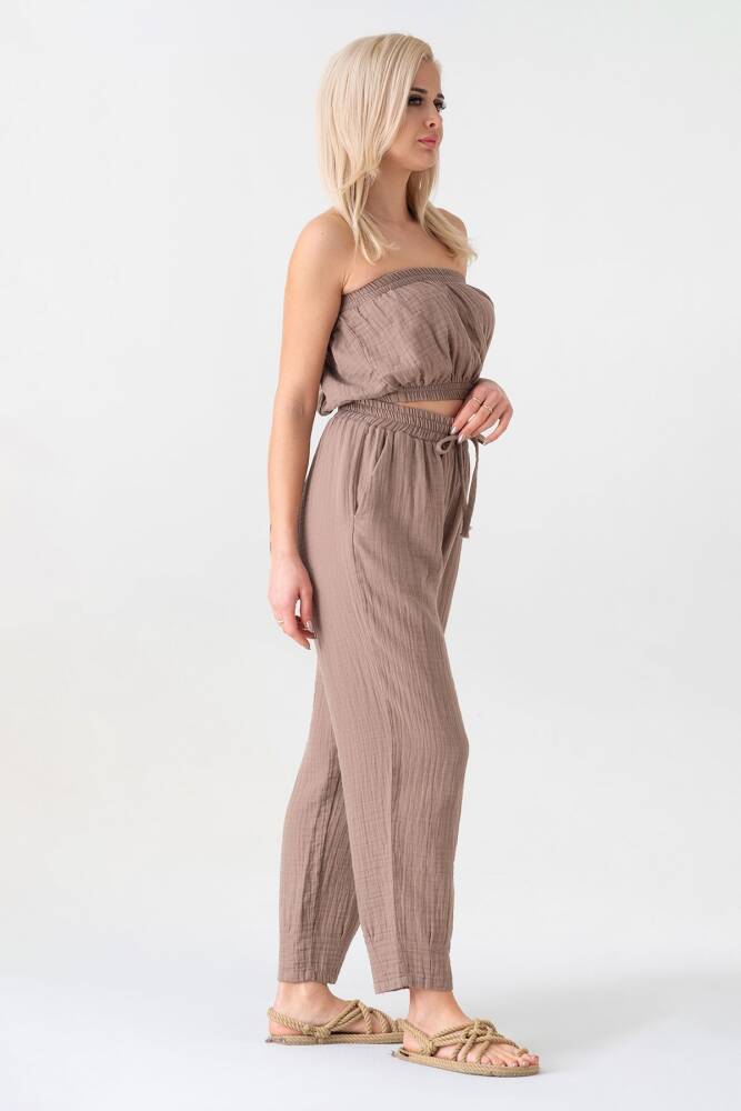 Müslin Beli Lastikli Bileği Pensli %100 Pamuk Kadın Pantolon