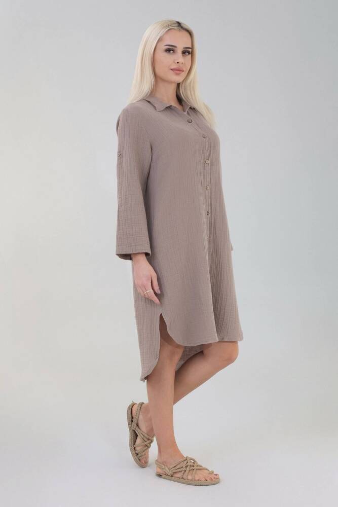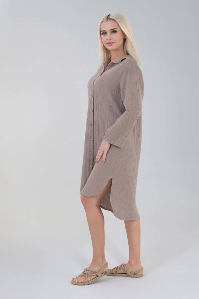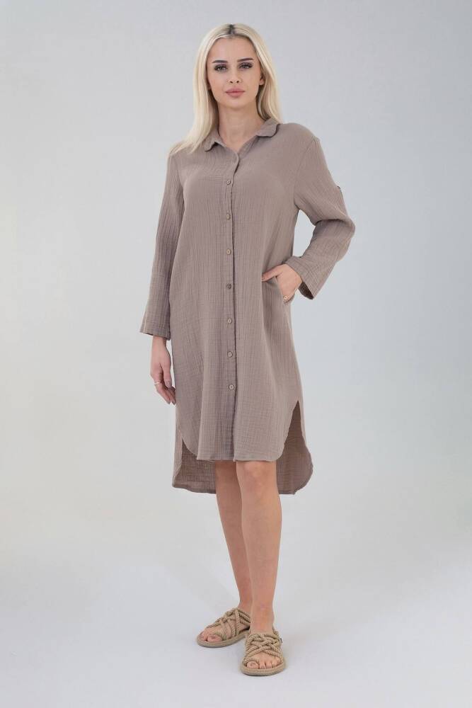 Müslin Doğal Kumaş Pamuk Önü Düğmeli Uzun Gömlek Elbise