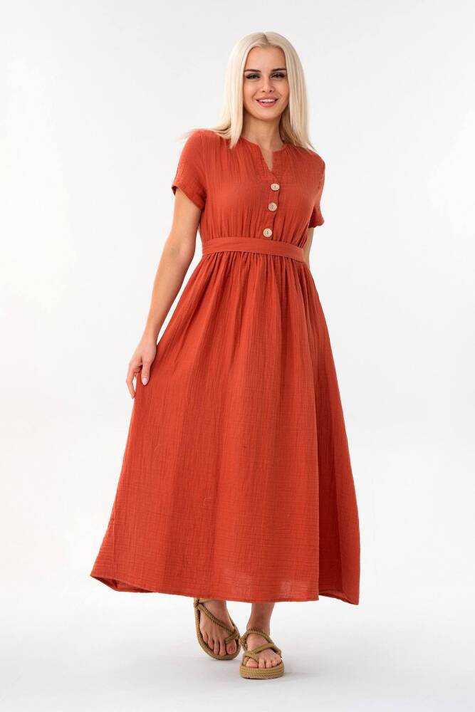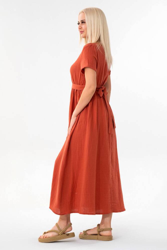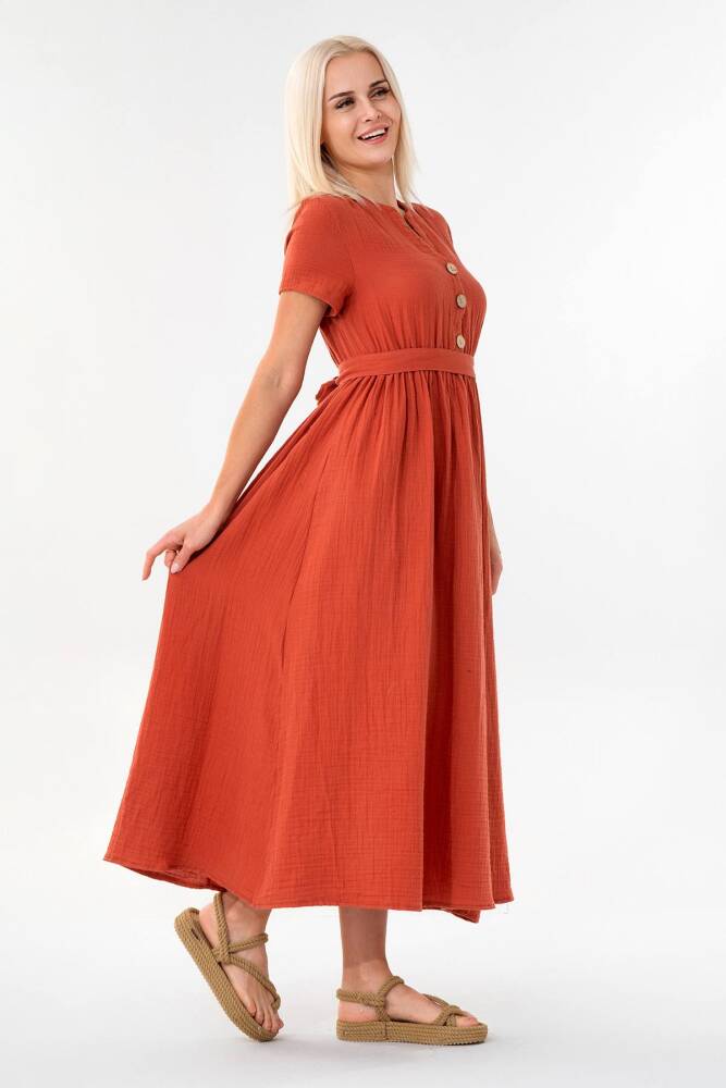 Müslin Elbise Beli Lastikli Kiremit