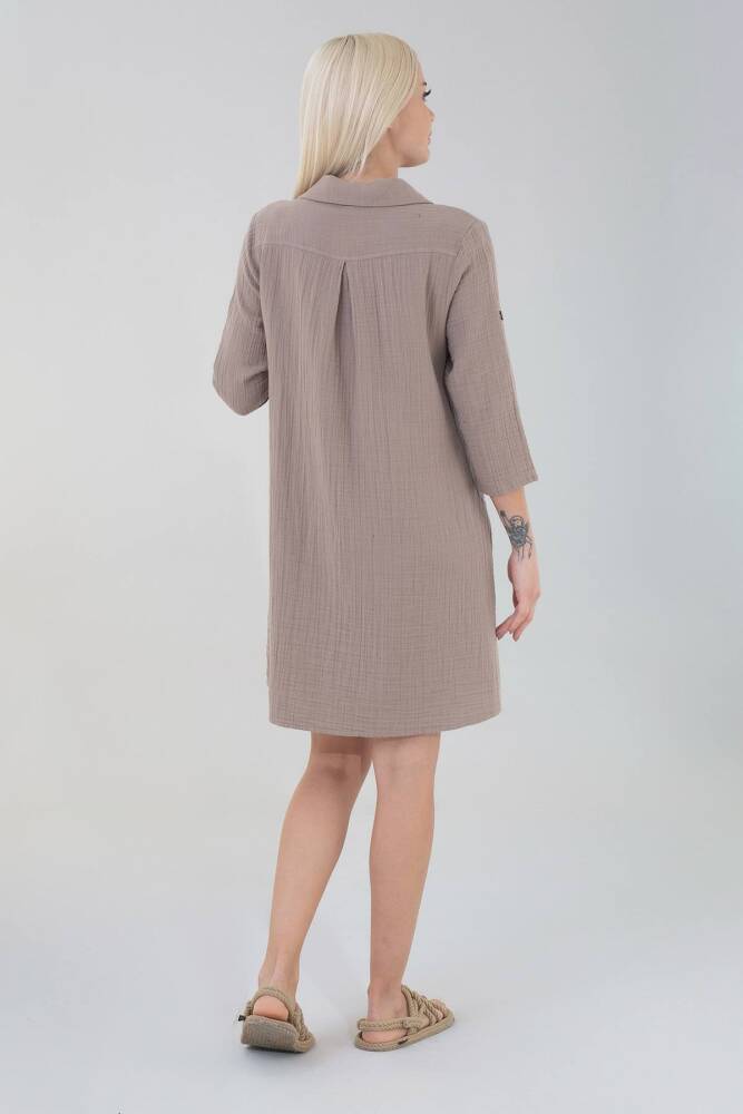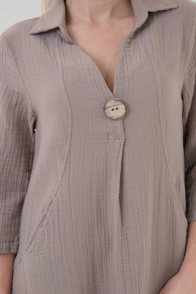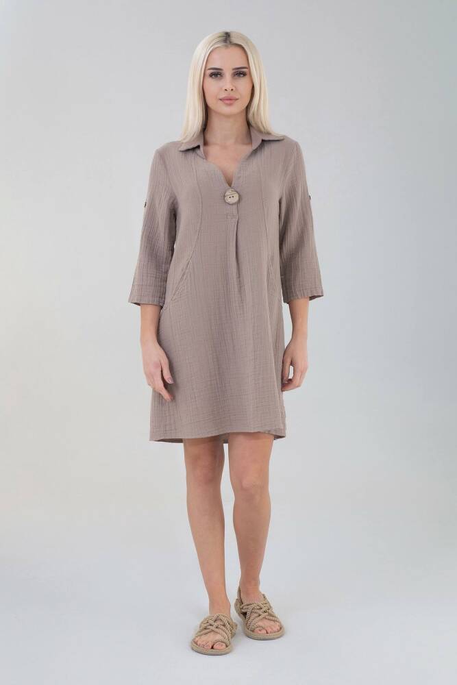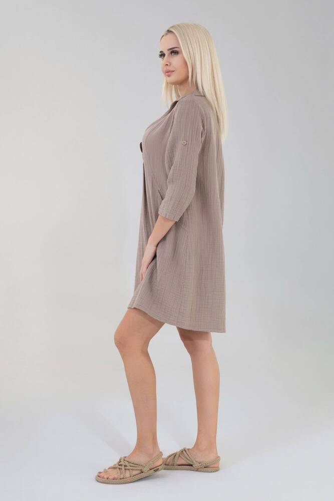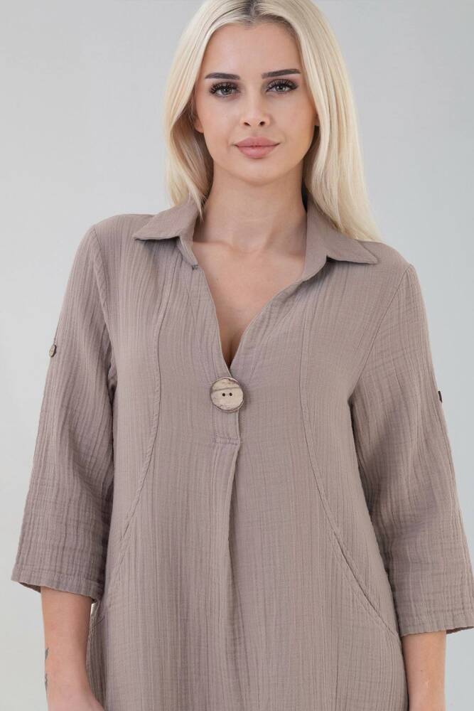 Müslin Fakir Kol Doğal Pamuk Önü Cepli Fakir Kol Tunik Elbise Vizon