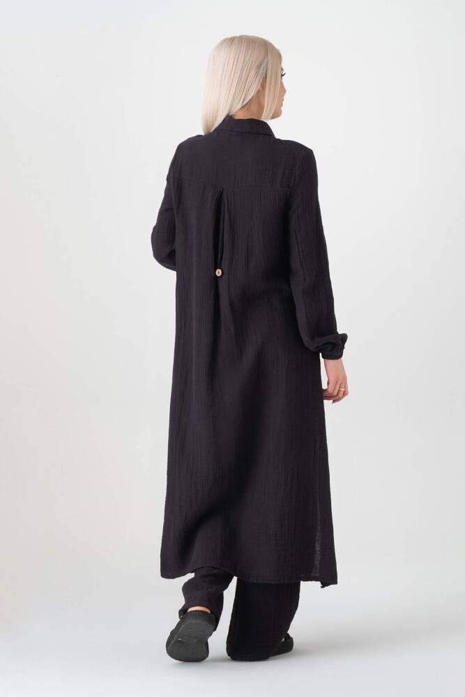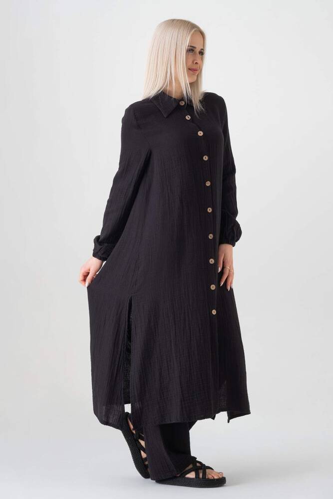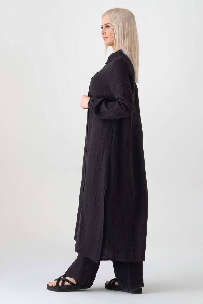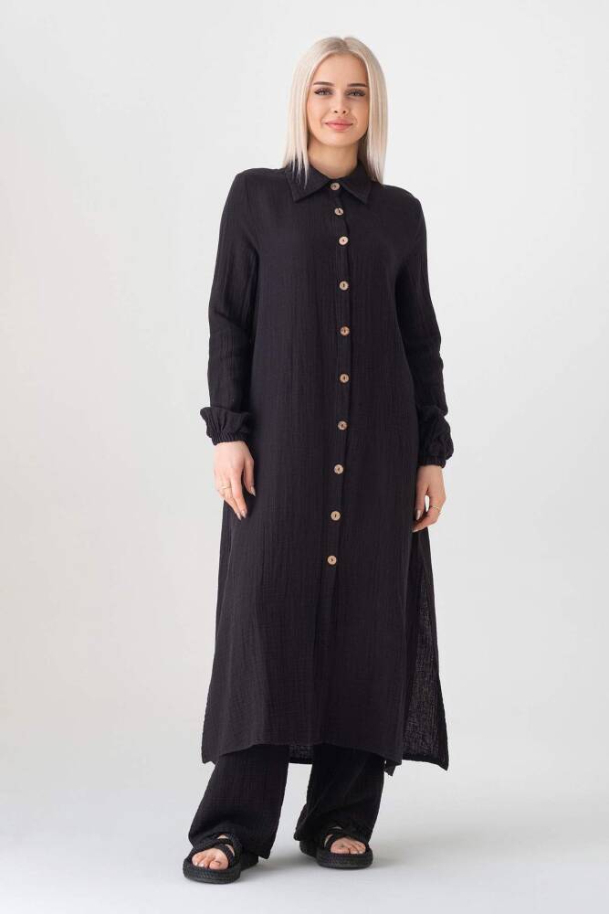 Müslin Kumaş %100 Doğal Pamuk Uzun Nergis Tunik Tesettür Siyah