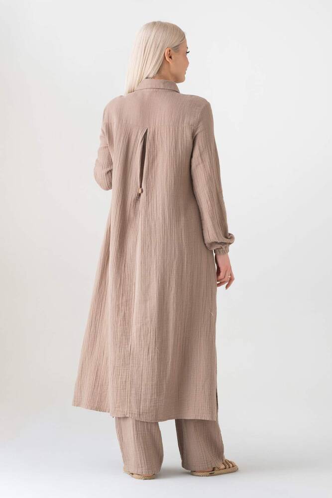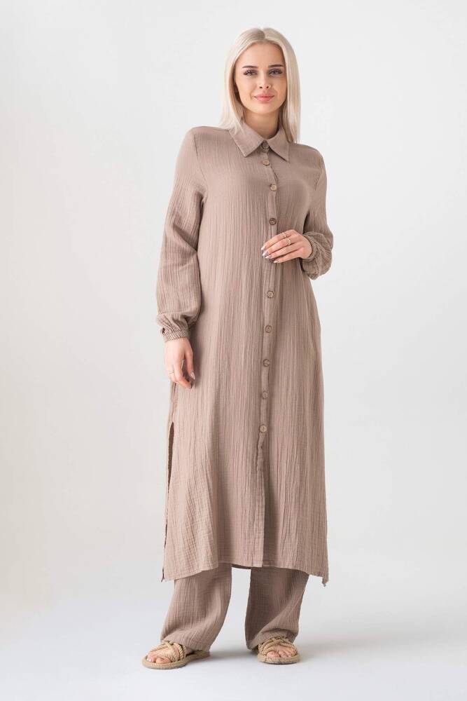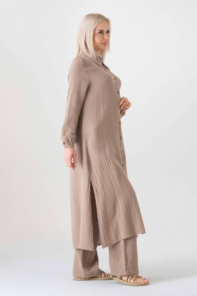 Müslin Kumaş %100 Doğal Pamuk Uzun Nergis Tunik Tesettür Vizon