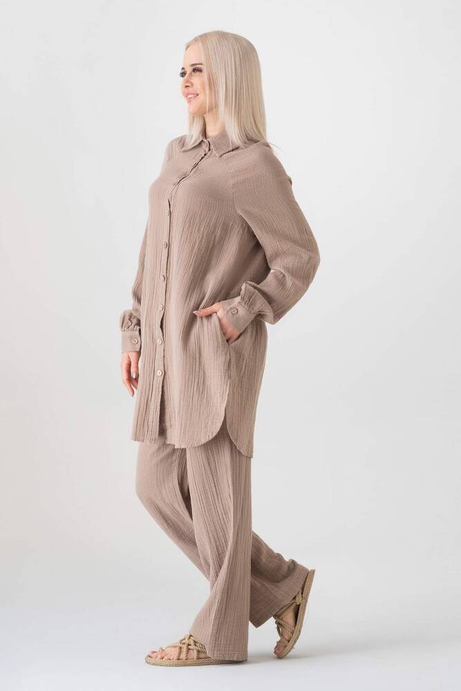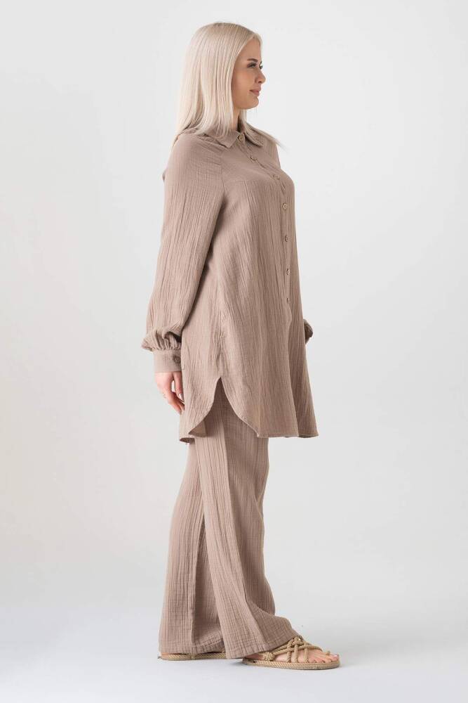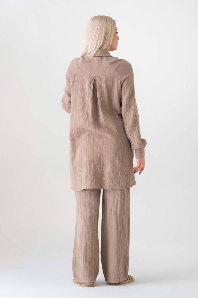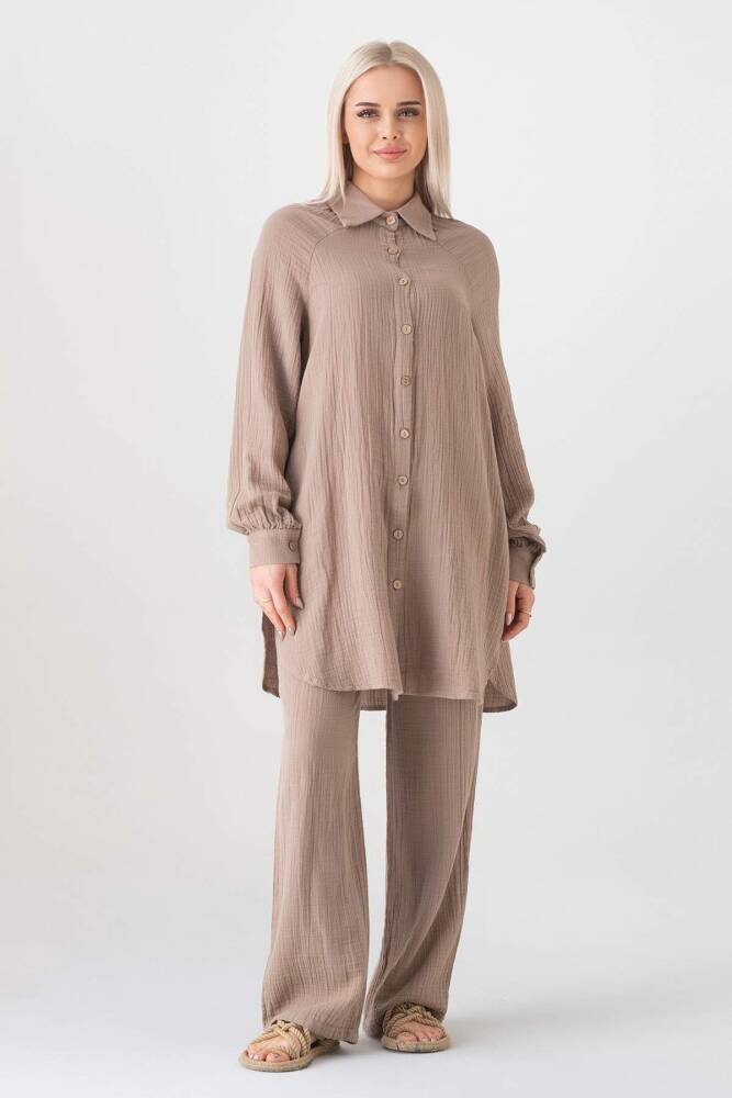 Müslin Kumaş %100 Pamuk Reglan Kol Bayan Gömlek Vizon