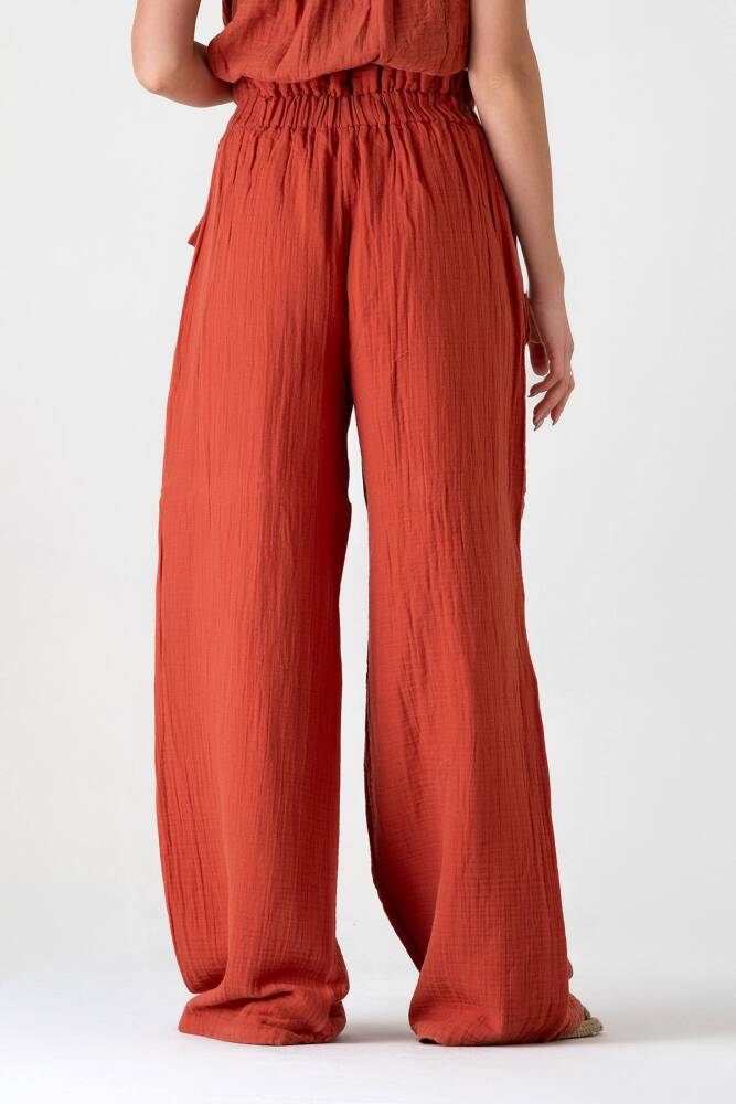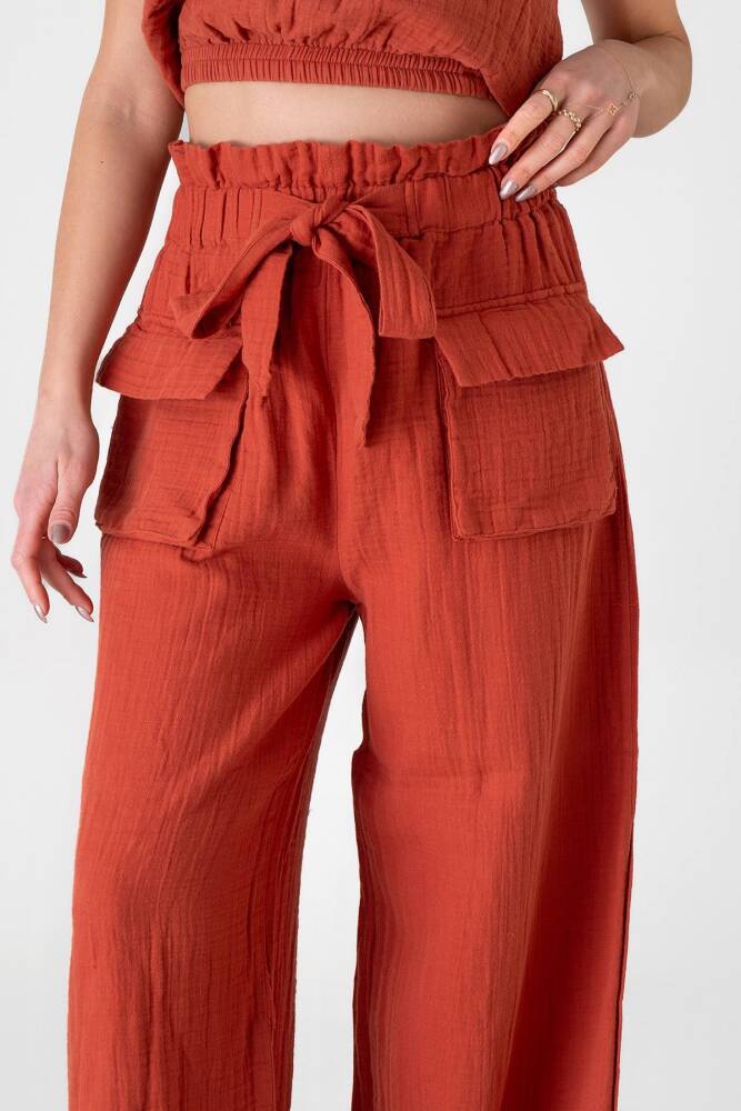 Müslin Kumaş %100 Pamuk Yüksek Bel Önden Kargo Cep Pantolon