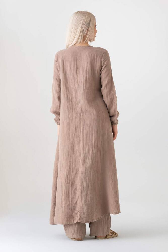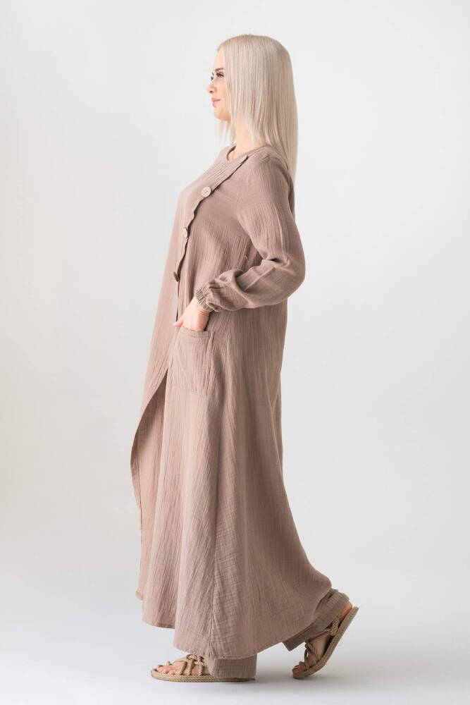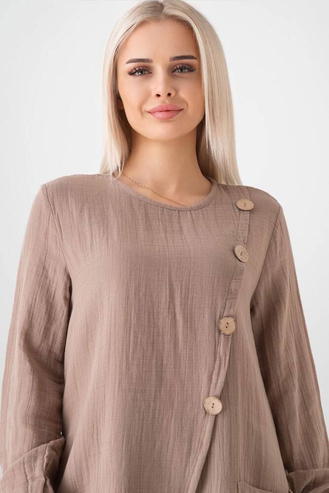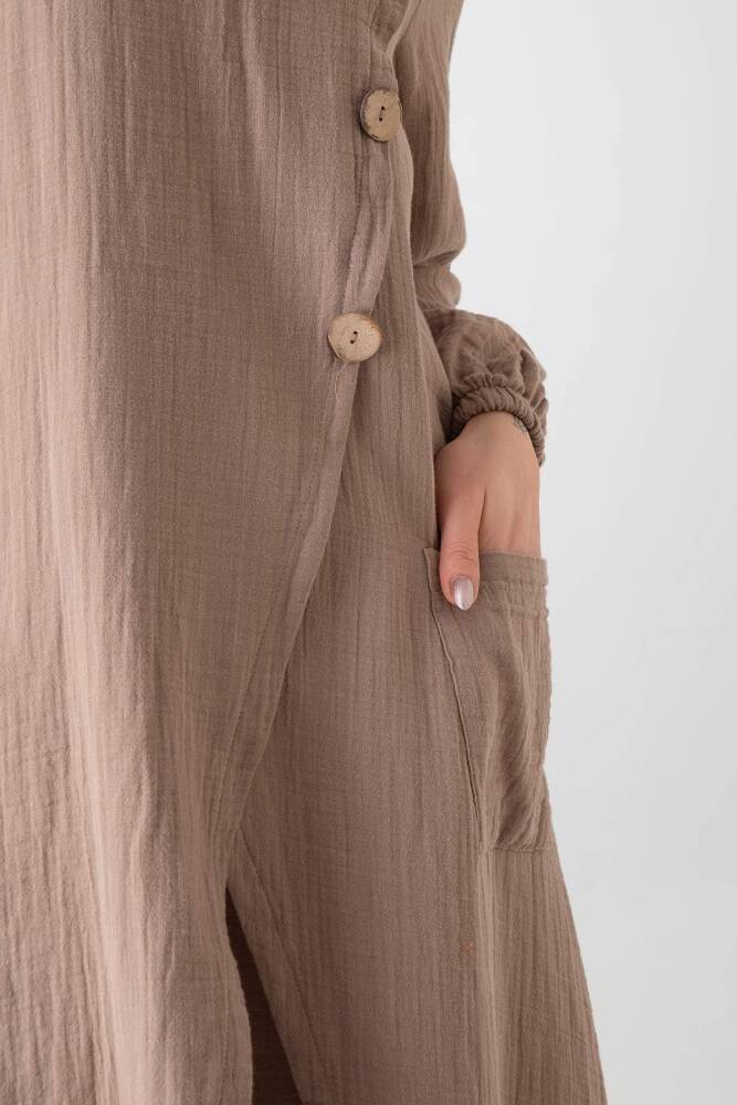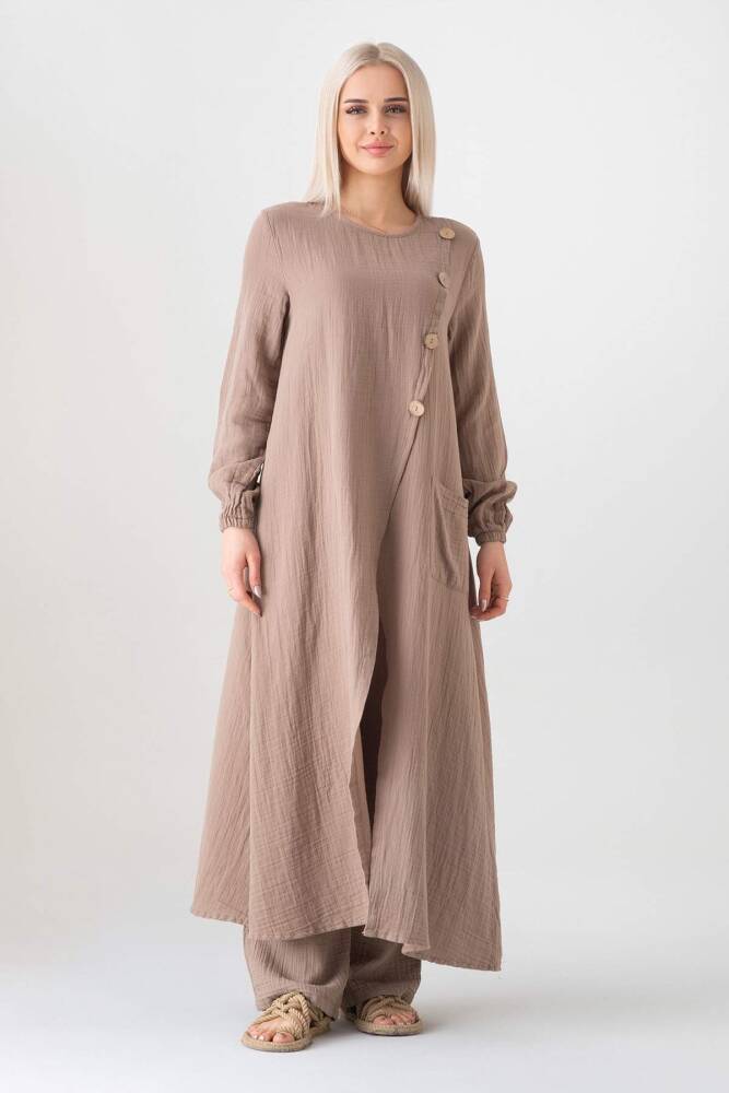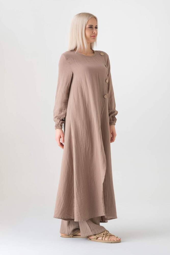 Müslin Kumaş Düğme Detay Önden Yırtmaçlı %100 Pamuk Yazlık Tesettür Tunik;