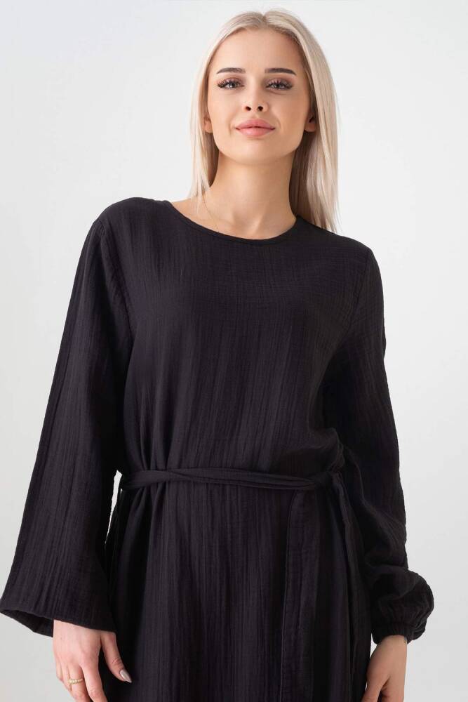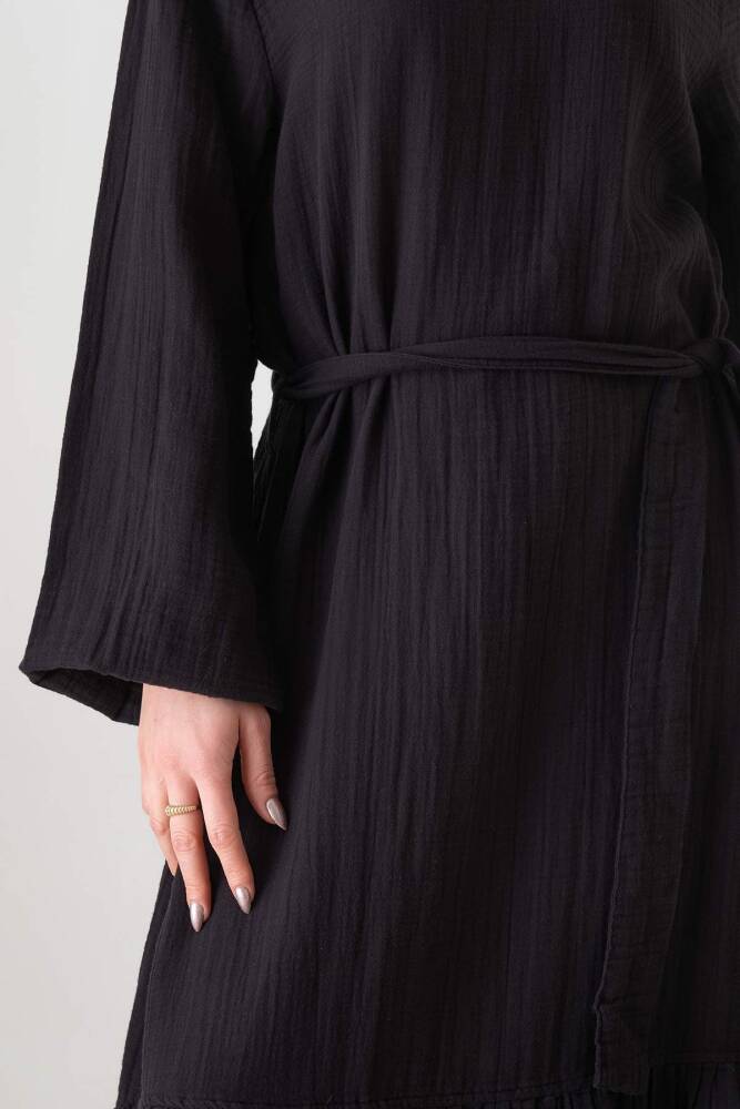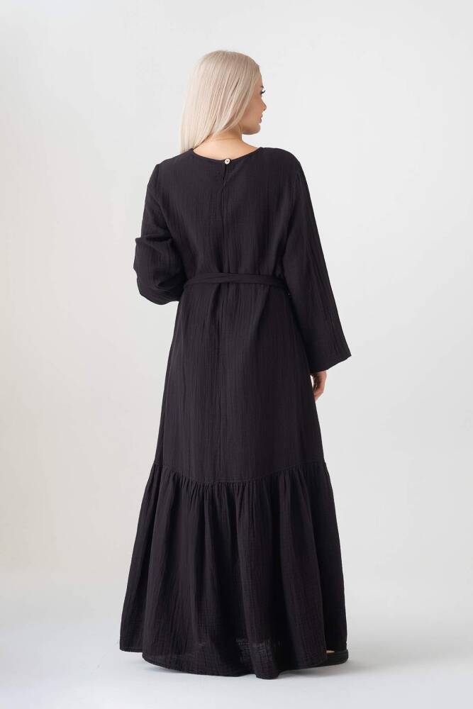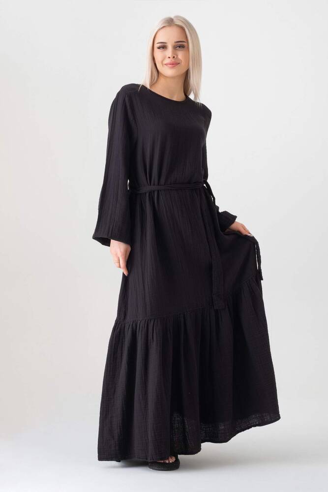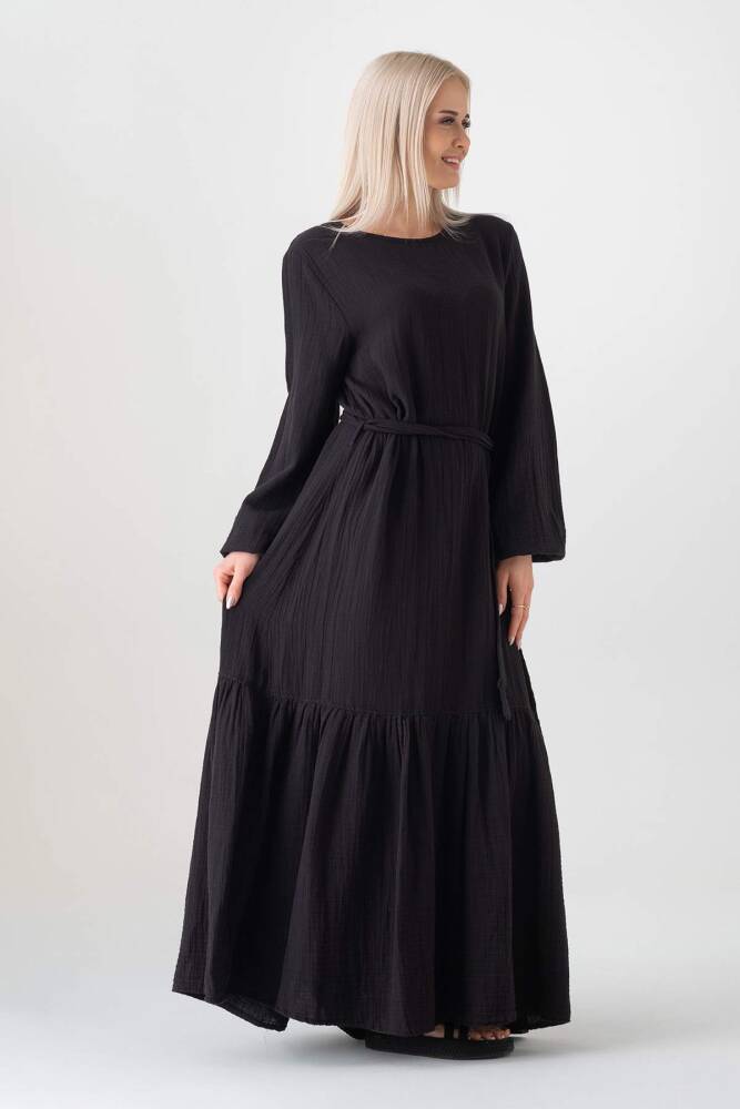Müslin Kumaş Eteği Büzgü %100 Pamuk Günlük Yazlık Tesettür Elbise Siyah