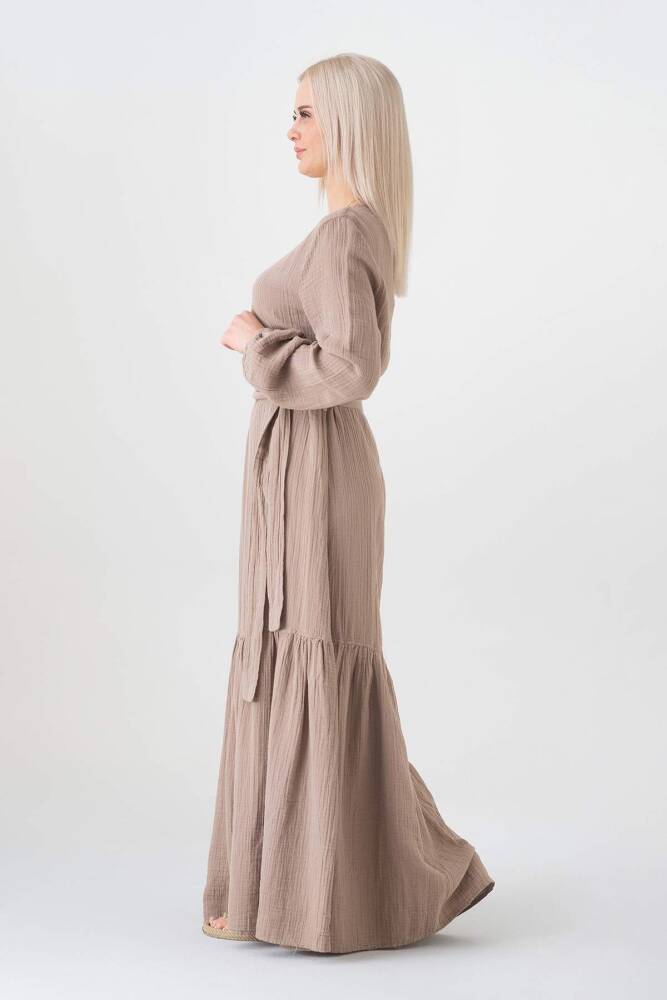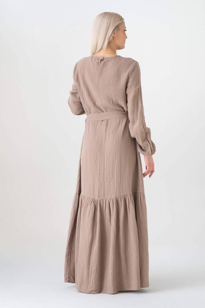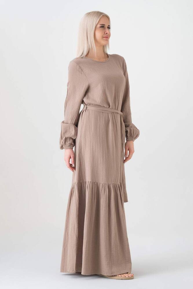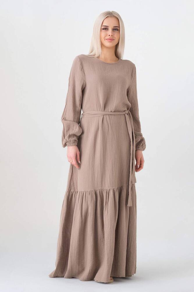 Müslin Kumaş Eteği Büzgü %100 Pamuk Günlük Yazlık Tesettür Elbise Vizon