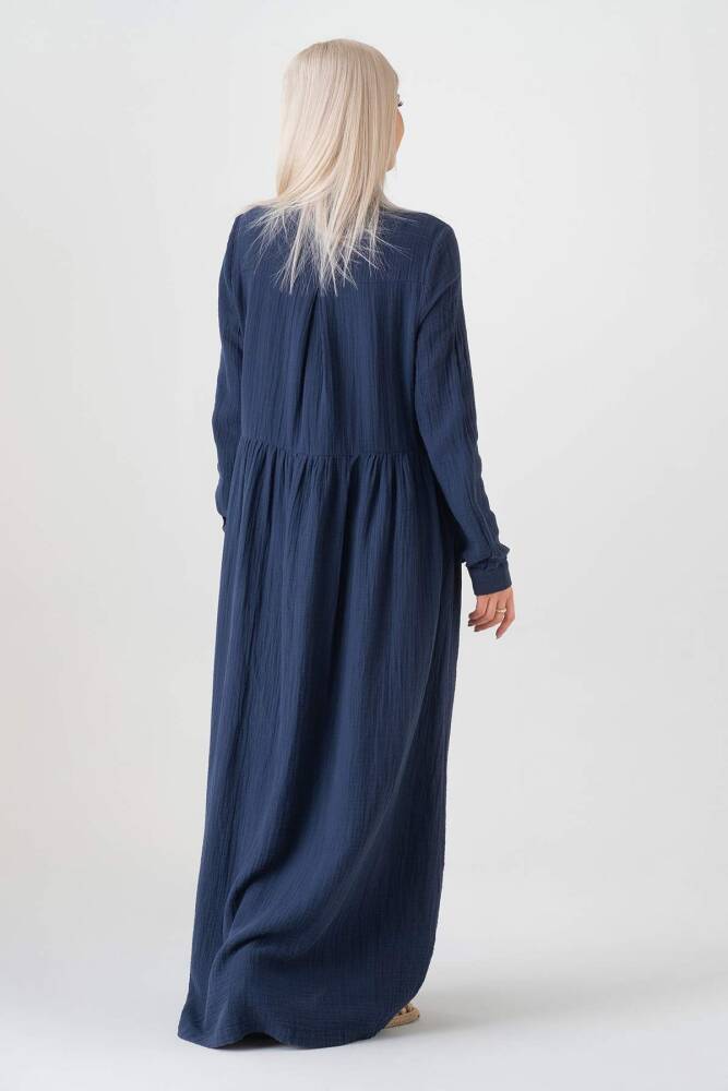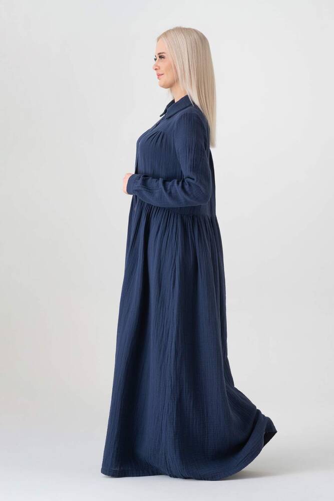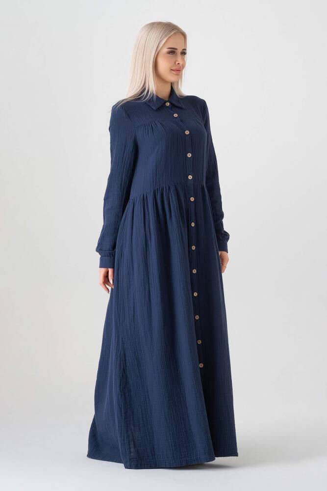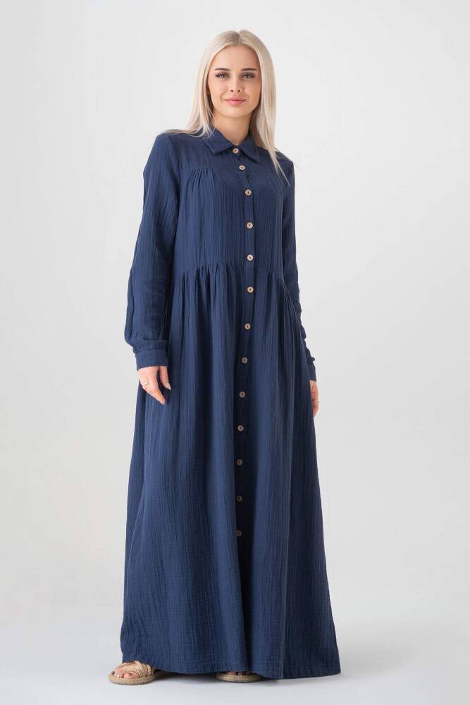 Müslin Kumaş Önden Düğmeli %100 Doğal Pamuk Kumaş Yazlık Uzun Tesettür Elbise,