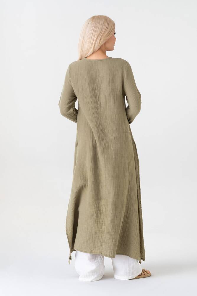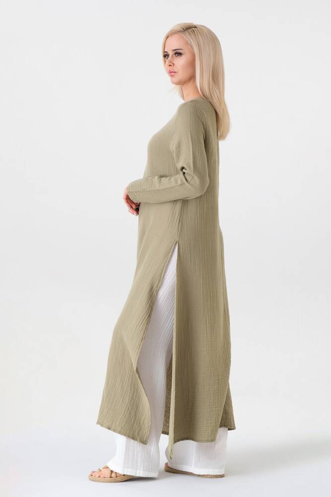 Müslin Kumaş Yandan Yırtmaçlı %100 Pamuk Tesettür Uzun Tunik