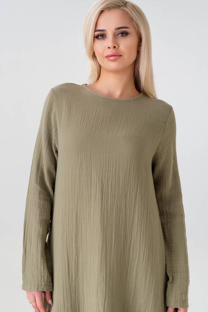 Müslin Kumaş Yandan Yırtmaçlı %100 Pamuk Tesettür Tunik Yeşil