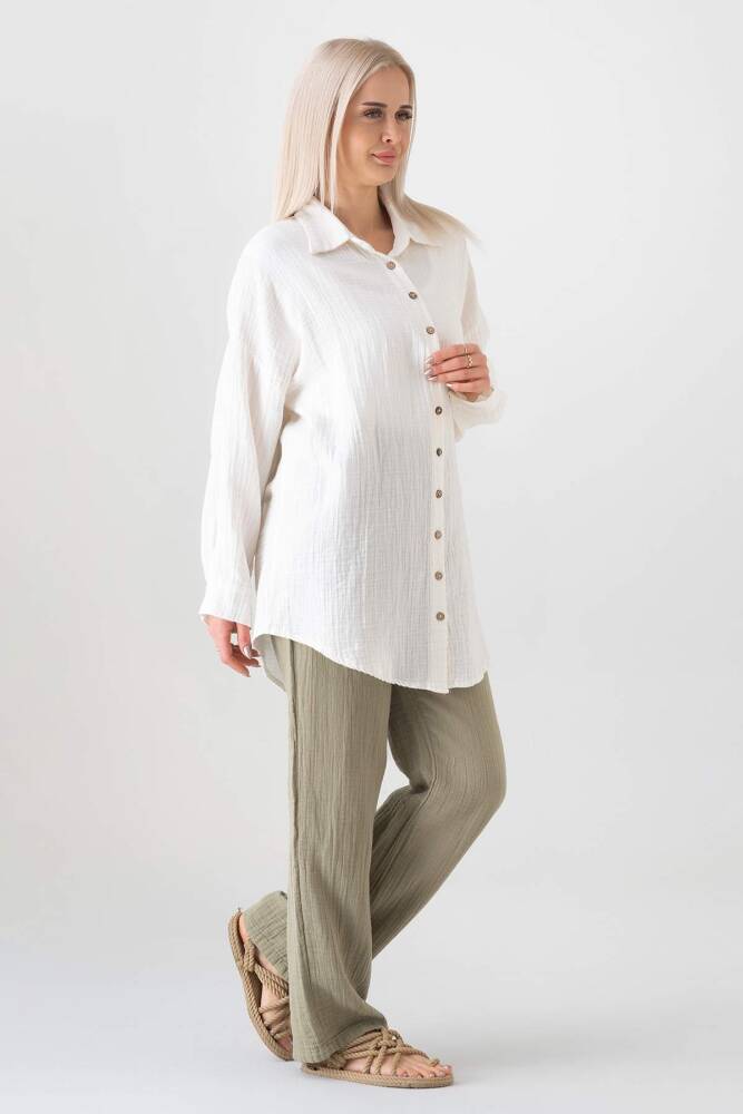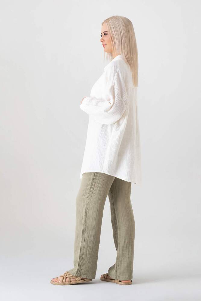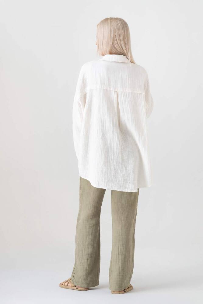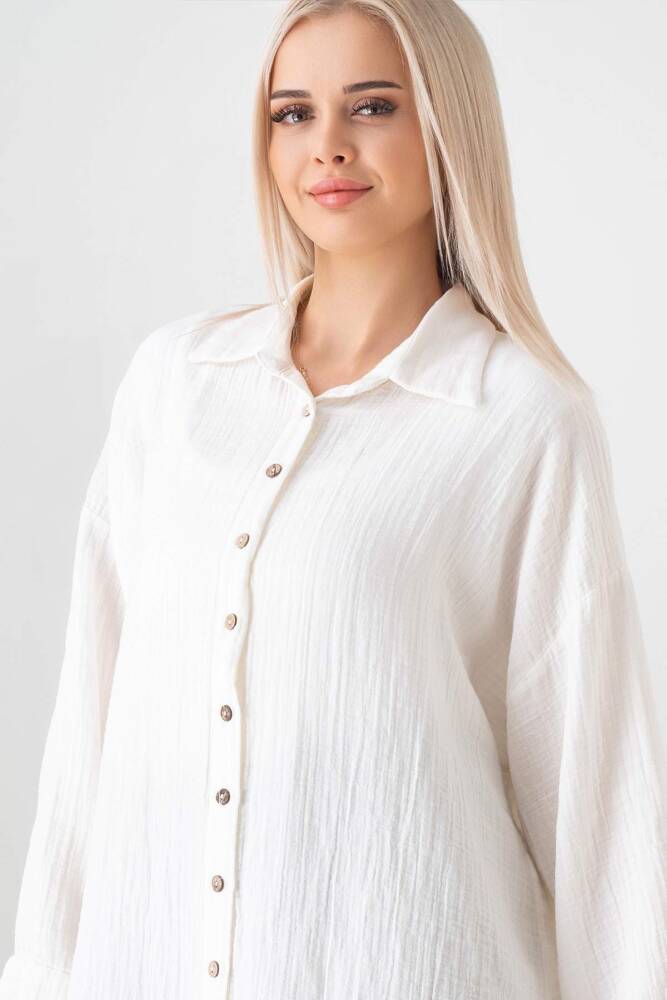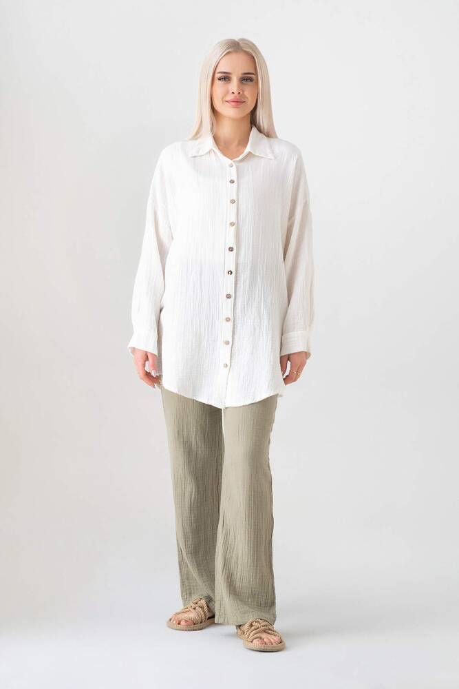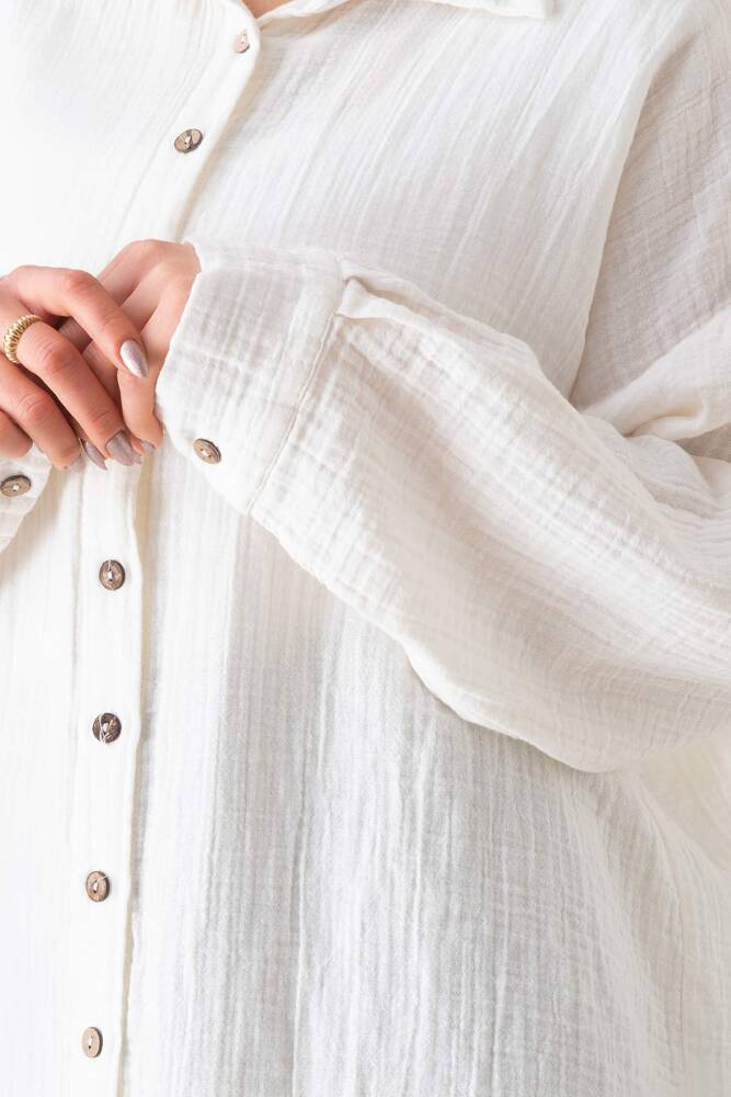 Müslin Owersize Doğal Kumaş %100 Pamuk Natural Kadın Gömlek Beyaz