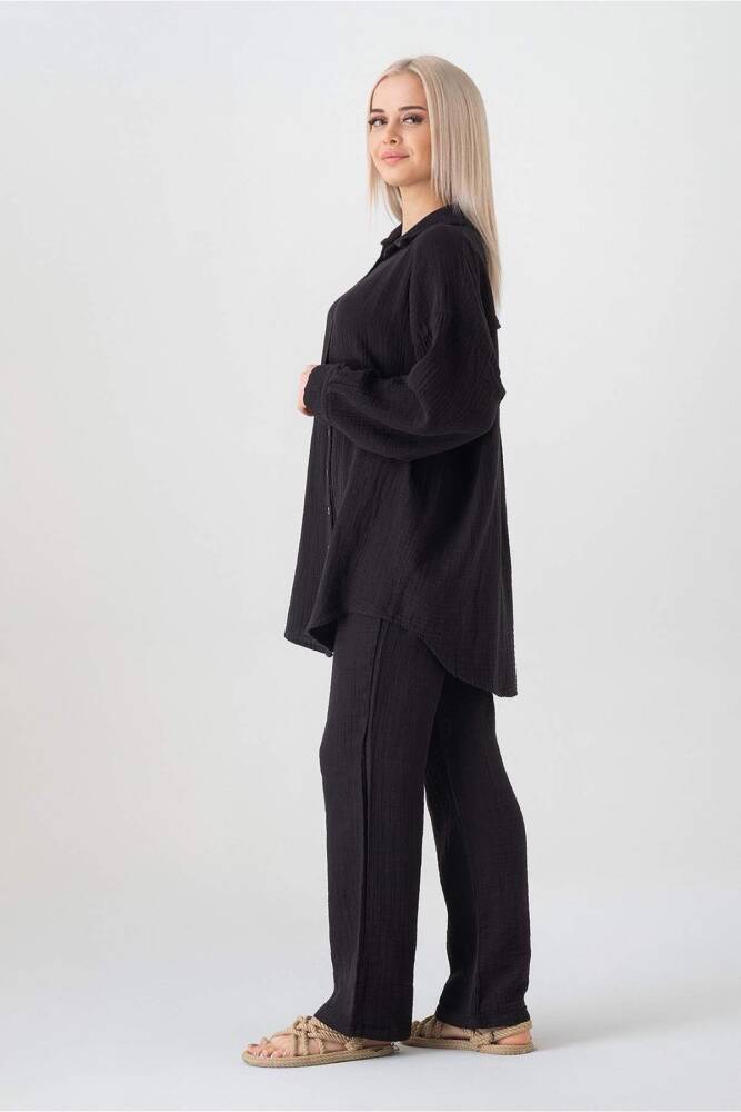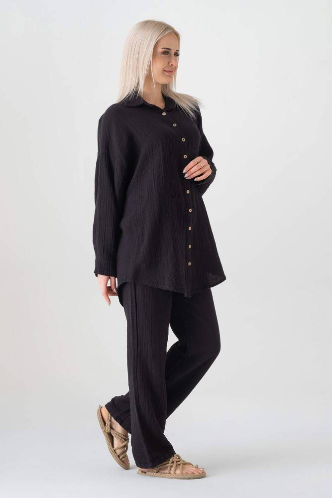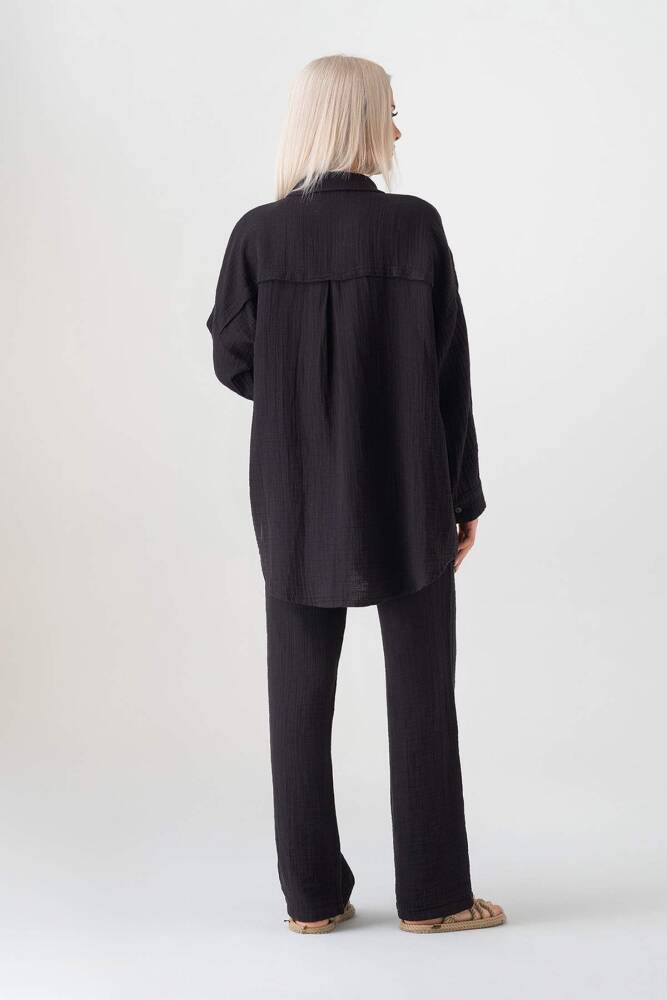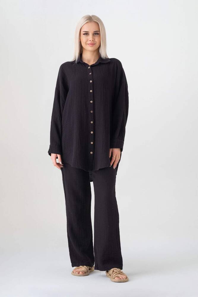 Müslin Owersize Doğal Kumaş %100 Pamuk Natural Kadın Gömlek Siyah