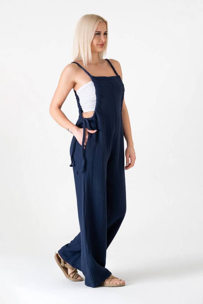 Müslin Salopet %100 Pamuk Yazlık Salaş Lacivert