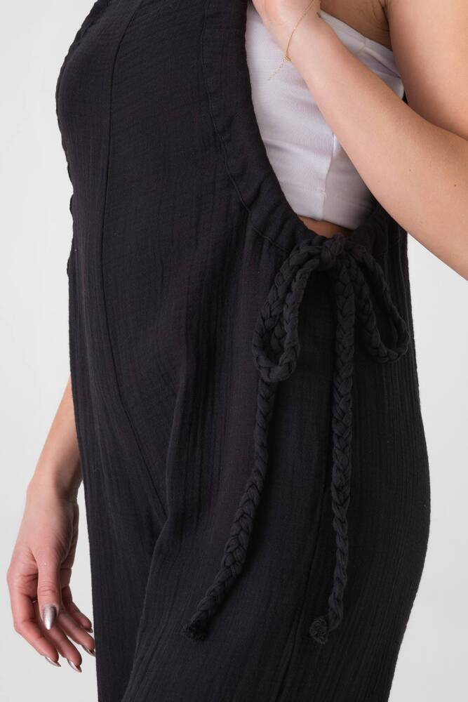 Ürün %100 Pamuk müslin kumaş kullanılarak geri dönüşüme uygun şekilde üretilen natural bir üründür. Örgü detaylı askısı sayesinde boyu ve bel dekoltesi istenilen şekilde ayarlanabilir.