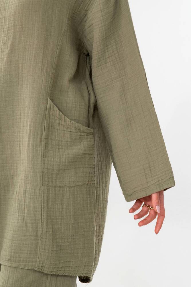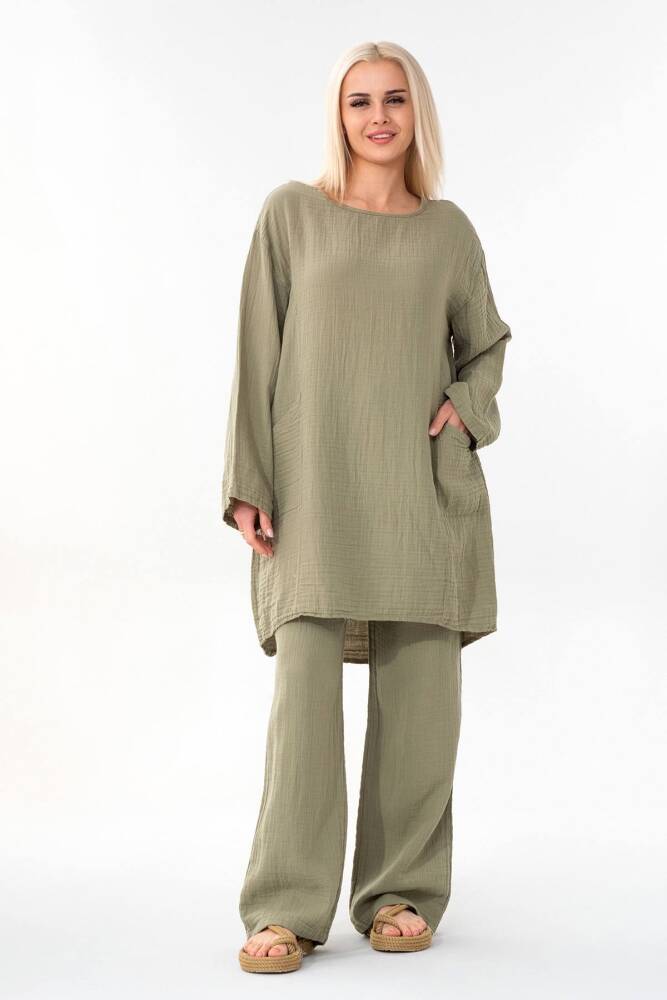 Müslin Tunik %100 Pamuk Cep Detay Salaş Müslin Elbise Tesettür Yeşil