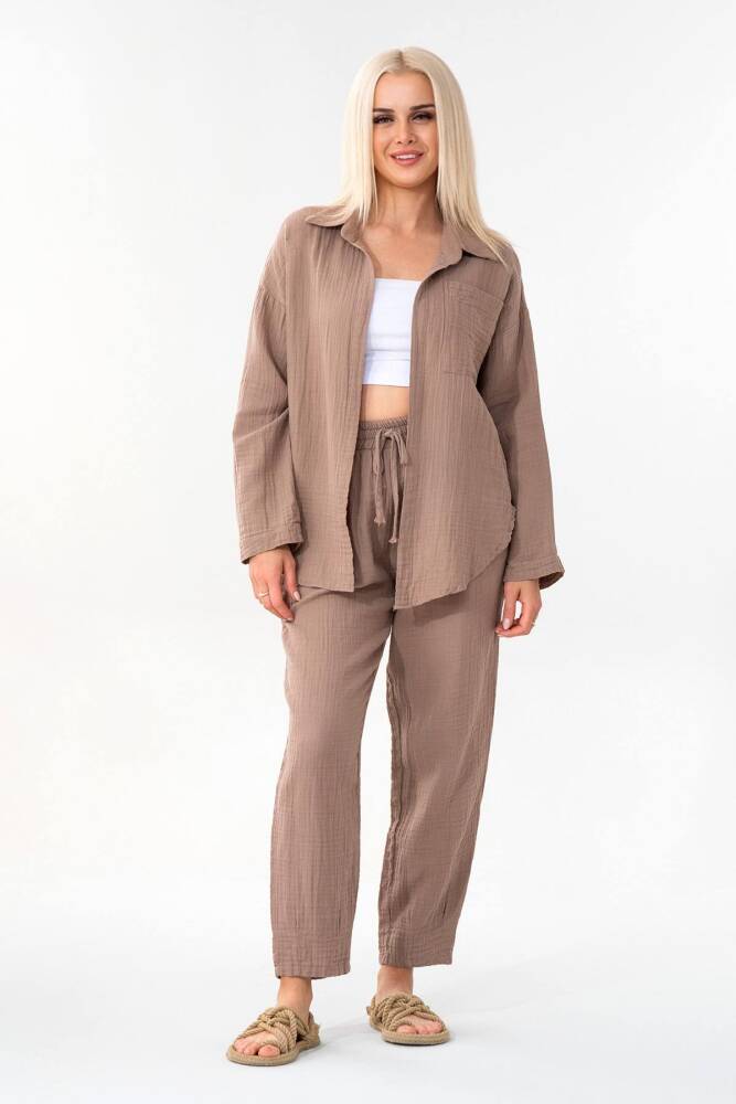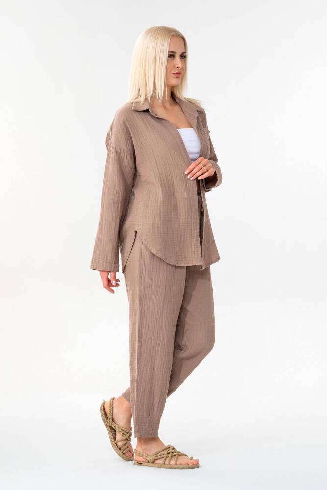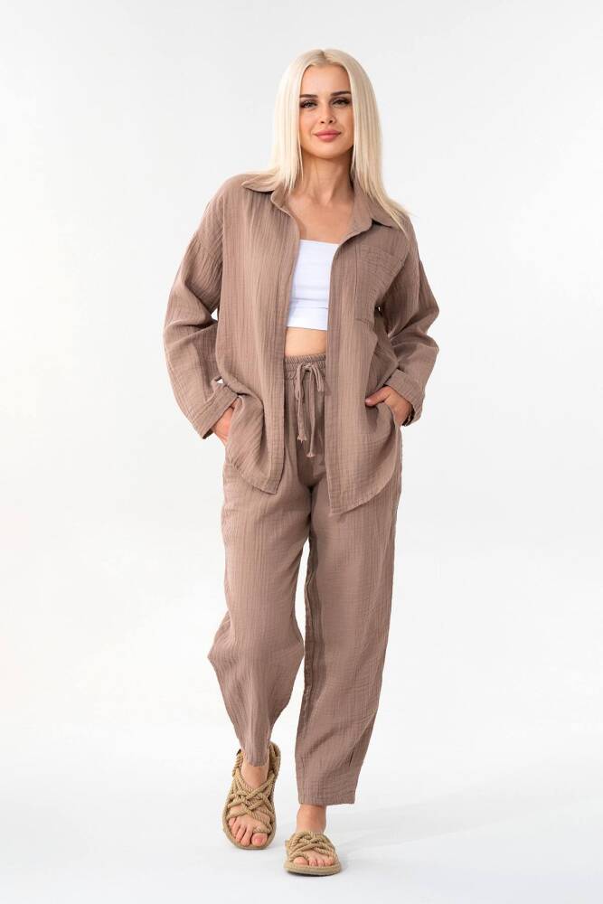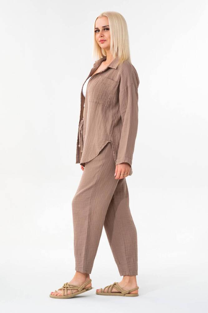 Tek Cep %100 Pamuk Müslin Gömlek Vizon